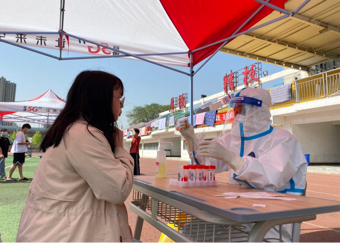学校操场采样现场的一抹“志愿红”,让前来参与核酸检测的同学们多了一份心安。在疫情面前,仍然需要各位同学同心、同向、同步、同力的努力,此刻,再次提醒各位同学平时要做好个人防护,相信在不久的将来,我们一定能战胜本轮疫情!