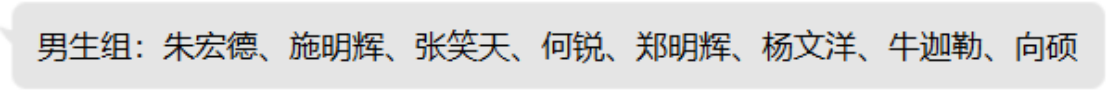 4月2日,进行小组制循环赛,男生分为四组,每组五人循环比赛,积分最高者晋级淘汰赛。女生分为三组,每组四人,积分最高者晋级淘汰赛。