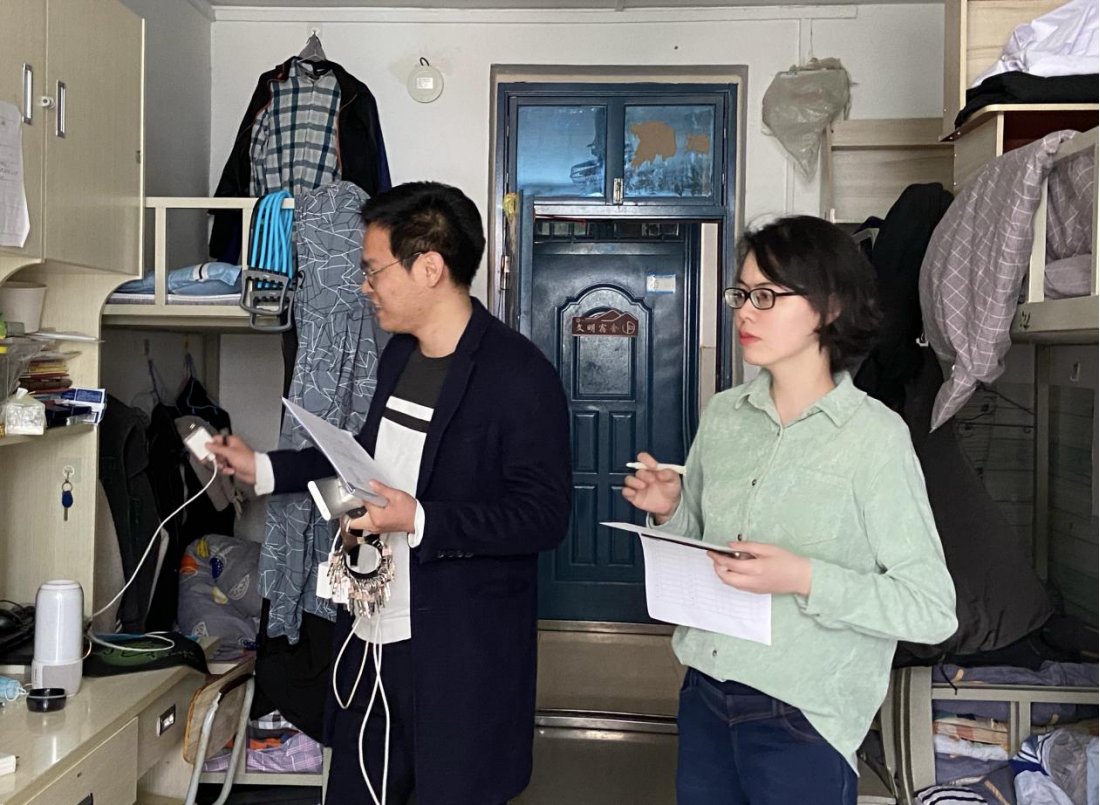 检查走访中,辅导员们查看了同学们宿舍生活环境、卫生状况,检查了宿舍用电安全性,叮嘱同学们按照疫情防控要求做好个人防护,主动配合每天晨午检。