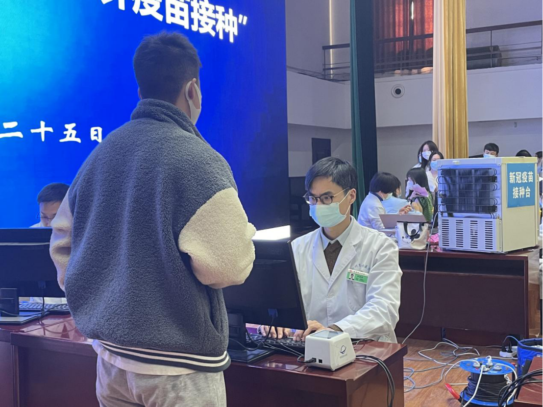 在学生会干事的引导下,前来接种疫苗的学生有序排队,依次进行信息登记、身份核验、签署知情同意书、疫苗接种,并在接种后到留观区观察。同时医务人员严格审核接种者第二剂疫苗是否已间隔六个月并告知相关注意事项,严格把控疫苗接种的适应证和禁忌证。流程规范有序,现场有条不紊。