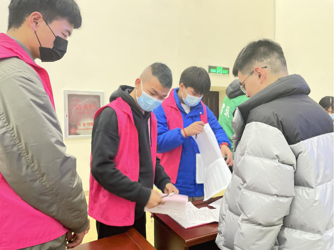学生会干事们进行信息登记、身份核验