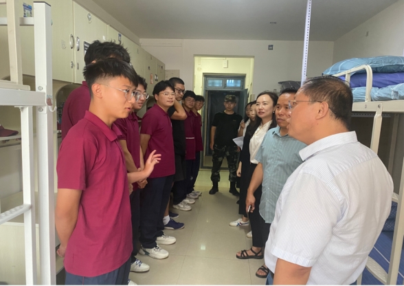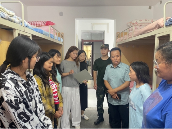 12日,yl6809永利官网集团院长孙勇、党总支书记苏云峰、副院长王珂带领2023级新生辅导员教师在郑州校区学生宿舍进行走访,开展新生宿舍检查、学生慰问及谈心谈话工作。