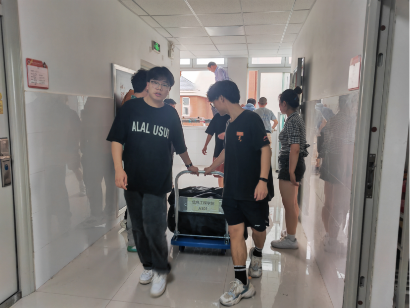 搬迁当天,yl6809永利官网集团党总支书记苏云峰、副书记王倩及21级、22级全体专兼职辅导员全程参与搬迁工作,及时解决搬迁过程中出现的问题。搬迁现场师生们积极配合,本次搬迁2022级学生包裹共2064件,涉及学生人数757人,包含男生262人、女生495人,志愿者们以高度的责任感和团队合作精神搬运重物,使学生们的搬迁过程更加顺利和轻松。大巴车载满行李穿梭在两个校区之间,志愿者忙碌的身影在人群中忽隐忽现志愿者们不辞辛劳,在楼道上下奔波,搬运着行李晶莹的汗不停滴落,逐渐浸湿了他们的衣裳。