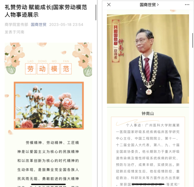 在学院官方公众号上进行国家劳动模范人物事迹展示,劳模精神、劳动精神、工匠精神是以爱国主义为核心的民族精神和以改革创新为核心的时代精神的生动体现,是鼓舞全党全国各族人民风雨无阻、勇敢前进的强大精神动力。
