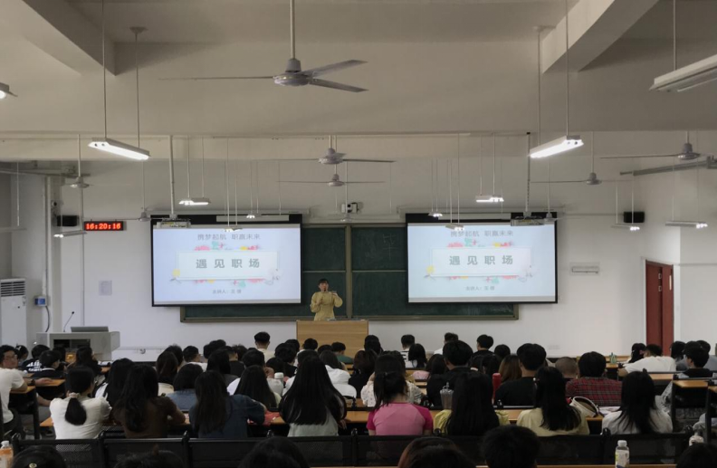 本次讲座主要从大学生职场角色转换及如何快速适应职场等方面进行,王倩就当前大学生整体就业趋势及学院往届毕业生的就业情况,指出了本届大学生在就业方面存在的一系列问题,解析了影响应届毕业生就业的关键因素,就如何面对职场进行了进一步阐述。