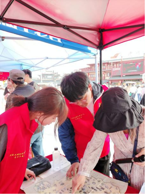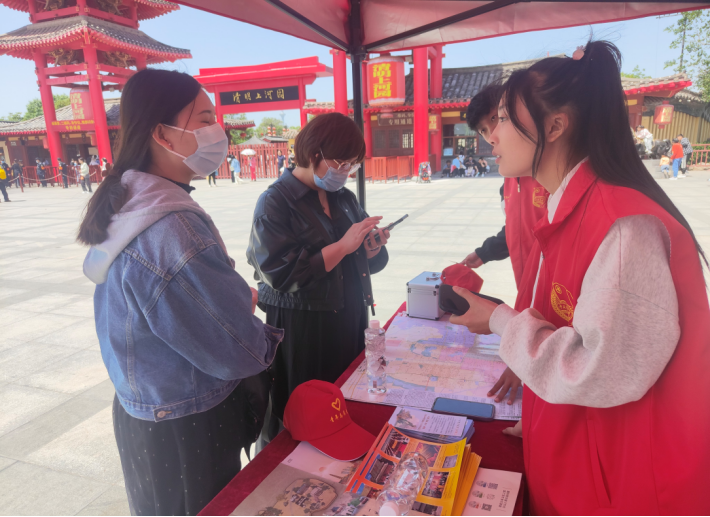 在此次志愿服务活动中,yl6809永利官网集团志愿者们在清明上河园景区耐心询问并了解游客群众的疑惑,志愿者们不仅为群众提供道路指引服务,还耐心的对外地游客介绍开封著名景点以及最佳的出行方案,并且热心的为旅客朋友们准备了爱心医疗箱。