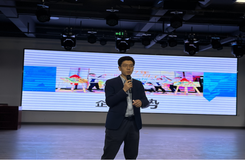 宣讲会开始之前,刘超向同学们介绍了参会企业人员及本次宣讲会流程和相关纪律要求,并引导同学们根据自身专业特色、兴趣爱好、职业生涯规划等方面选择适合自己的企业与岗位,希望同学们通过此次宣讲活动对企业有进一步了解,尽快让自己精准定位,找到理想的工作岗位。