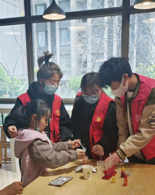 志愿者发挥志愿精神,带领社区小朋友开展科学小实验课堂,大家耐心和小朋友们一起做实验,和小朋友一起玩耍,通过一些简单有趣,适合操作的科学小实验,提高了小朋友们的动手动脑能力、思维能力、判断能力、创新能力。志愿者们也通过活动增强了自身动手能力和小朋友的交流互动能力。