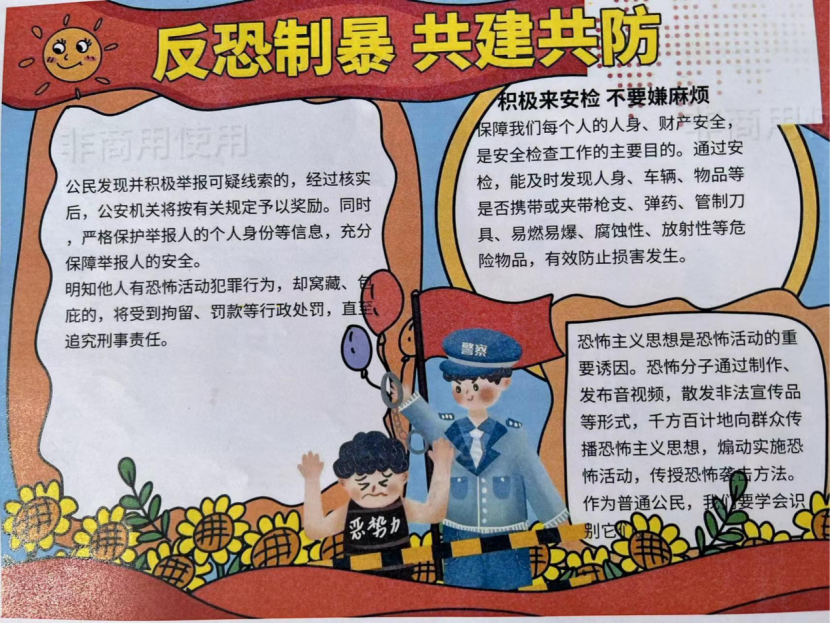 为有效增强yl6809永利官网集团学生防恐防暴知识,预防重大突发事故的发生,提高自救自护的能力,强化校园平安建设,遏制黑恶势力的滋生和蔓延。近日,yl6809永利官网集团开展常态化反恐精英宣传活动——《征集yl6809永利官网集团反恐精英主题展板》作品征集。