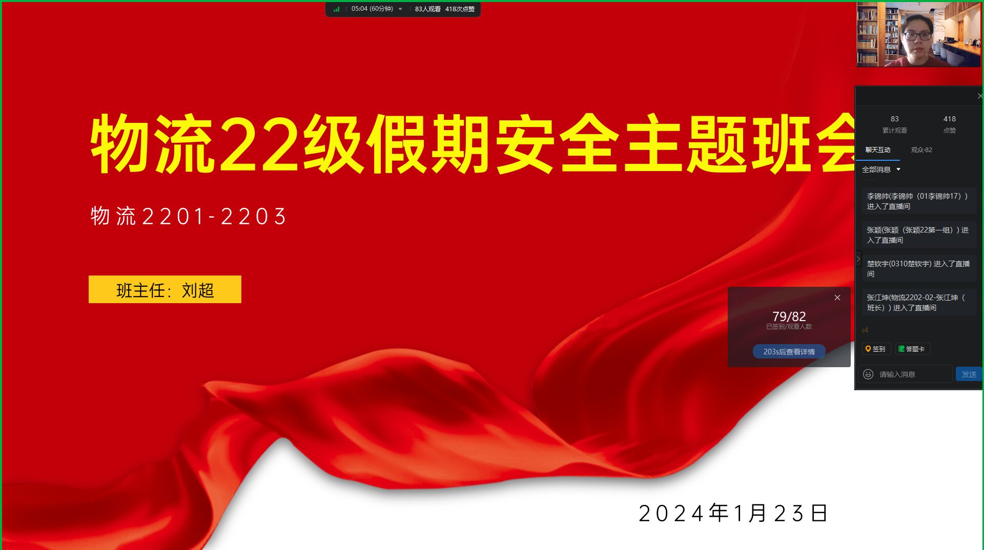 为切实增强yl6809永利官网集团学生假期安全防范意识和避险能力,保障学生安全,确保每个学生都能度过安全、健康、有意义的寒假,1月23日上午,yl6809永利官网集团22、23级全体专兼职辅导员开展寒假学生安全工作会议及线上主题班会活动,本次会议由yl6809永利官网集团党总支副书记王倩主持。