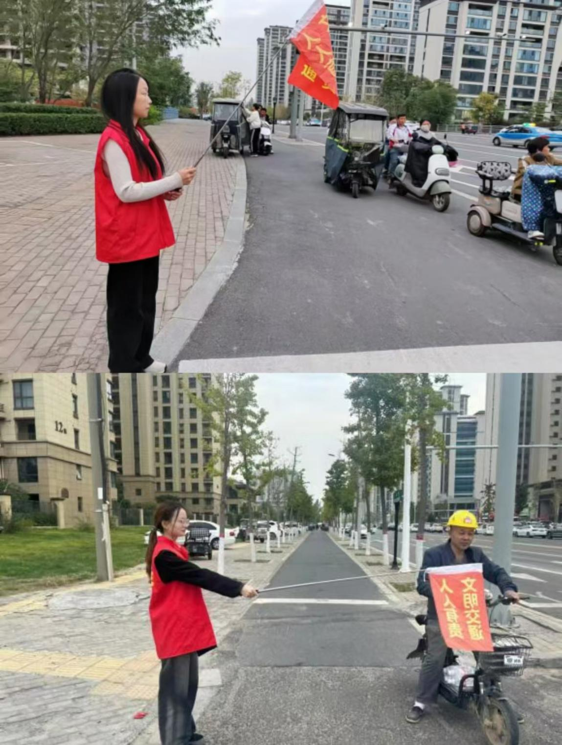 活动过程中,志愿者们身着鲜艳的马甲,手持引导旗,精神抖擞地站在路口。每当红灯亮起,他们便举起手中的旗帜,示意行人止步;绿灯亮起时,则引导行人快速通过路口。