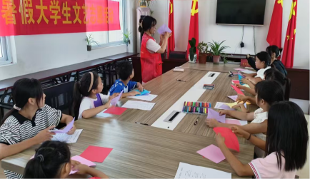 在开展给儿童折纸教授活动志愿者期间,先后组织各班小学生进入班级,首先是由志愿者团队给孩子们传授一些折纸的方法,让孩子们充分了解有关折纸的知识,然后再让孩子们进行一些实践,让孩子们打开自己的心扉,挥动自己的双手来折出各种各样不同的动物或者任何想要的东西。