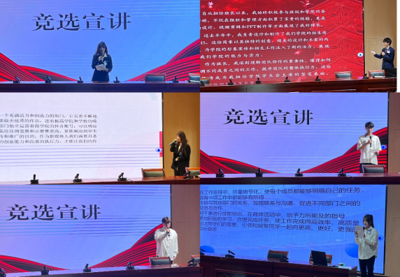 在竞选过程中,2023级参选干事们充分展现自身优点和特长,详细阐述和展望了自己的工作经历、工作目标、任务规划,并表示会秉承服务同学、推动学院发展的宗旨,在未来的工作中做到严于律己,积极部署和安排部门各项工作。