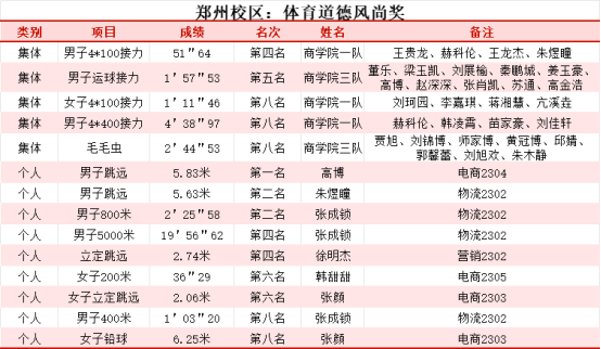 郑州校区体育道德风尚奖