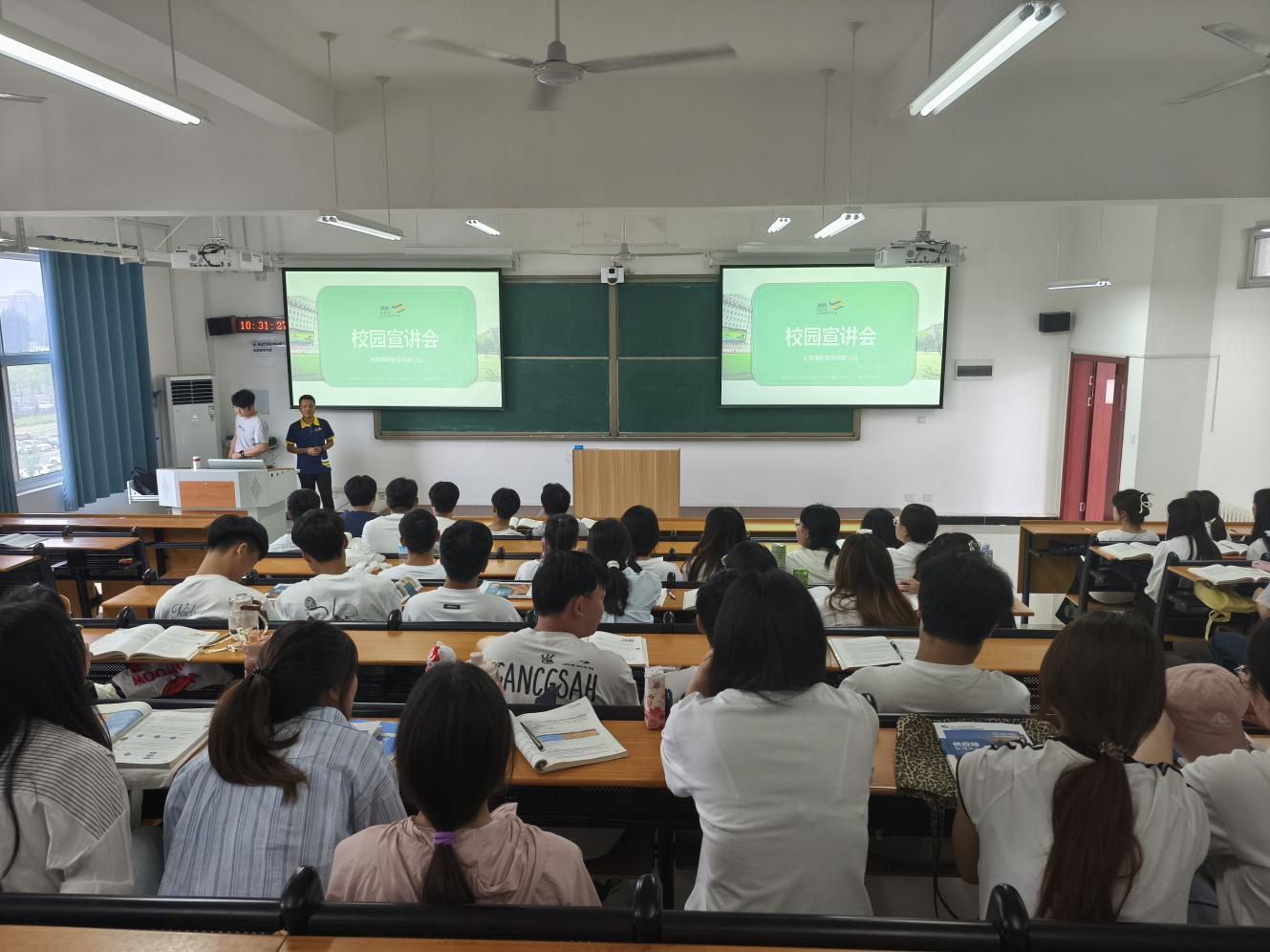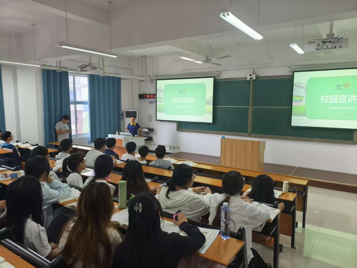 宣讲会上,各企业负责人通过精心制作的PPT、生动的视频资料,从公司发展历程、企业文化、组织架构、岗位需求、薪资待遇等方面进行详细介绍。北京中昱众诚企业管理有限公司着重展示了其在企业管理咨询领域的专业实力与广阔发展前景,分享了完善的人才培养体系;河南柒玥文化传媒有限公司以行业前沿的创意案例与充满活力的团队氛围,吸引了不少对传媒行业感兴趣的同学;河南旗帜物流有限公司则围绕物流行业的发展趋势,介绍了公司的核心业务与多元化岗位设置,为同学们提供了丰富的职业选择。