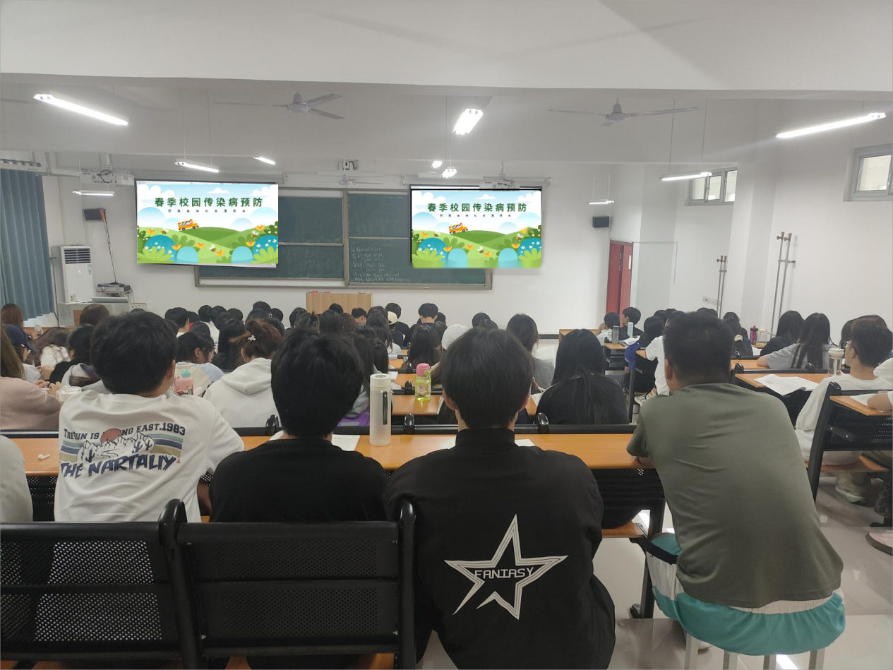 班会上,辅导员首先结合近期流感、诺如病毒等传染病高发态势,强调防控工作的重要性。通过图文展示和视频讲解,详细介绍了常见春季传染病的传播途径、典型症状及预防措施,重点提醒学生注意个人卫生,做到“勤洗手、常通风、戴口罩、少聚集”。