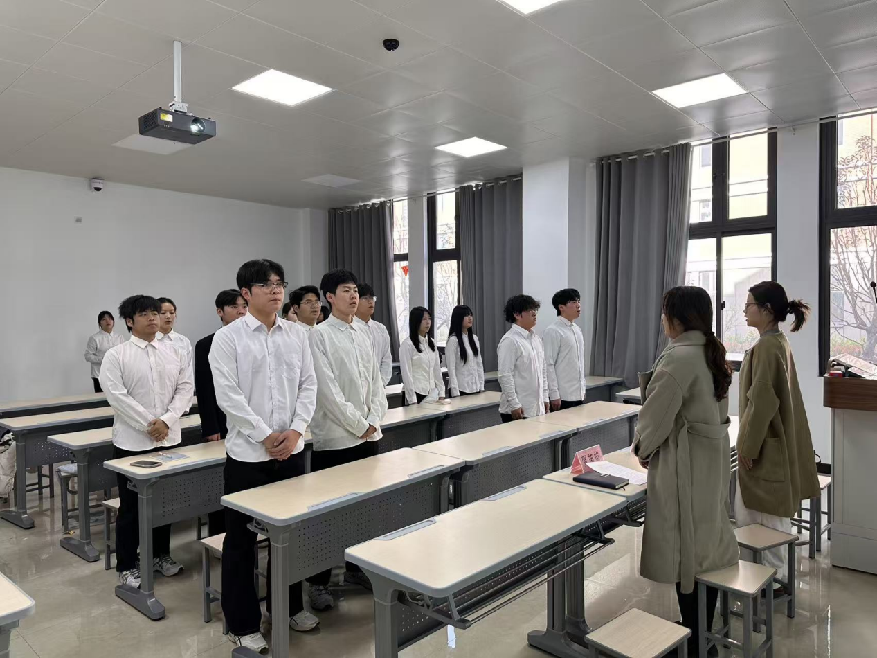“我志愿加入中国共产主义青年团……”优秀团员代表皇甫淑怡同志作为领誓人,带领全体新团员面向团旗举起右拳,庄严宣誓。铿锵有力的誓言回荡在讲堂内,不仅是对共青团组织的承诺,更是对革命先辈的告慰,彰显着新时代青年赓续红色血脉、担当民族复兴使命的决心。