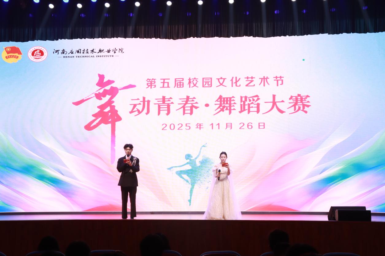 青春起舞,梦想飞扬。为丰富校园文化生活,展现学子蓬勃朝气与艺术风采,11月26日,在校团委的精心组织下,我校第五届校园文化艺术节“舞动青春·校园舞蹈大赛”在郑州校区学生活动中心隆重举行。