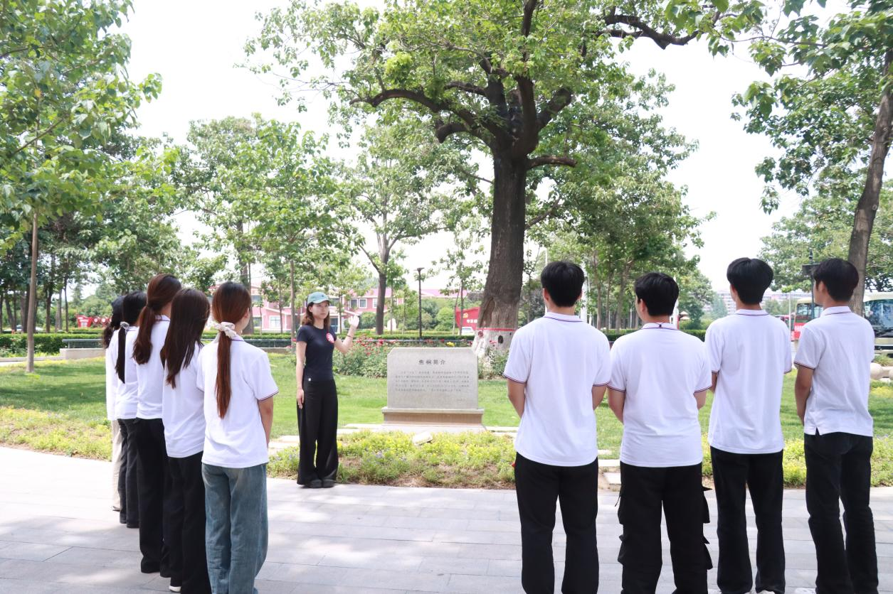 在焦裕禄干部学院,师生们开启了一场别开生面的实景教学。在“焦桐”树下,yl6809永利官网集团教师董会讲述了焦裕禄带领兰考人民防风治沙的感人故事。为了改变兰考恶劣的自然环境,焦裕禄经调研后选择泡桐树,因其成活率高、生长快,能有效防风固沙。1963年焦裕禄亲手种下这棵泡桐幼苗,如今它已枝繁叶茂,成为焦裕禄精神的象征,见证着兰考的沧桑巨变。