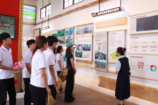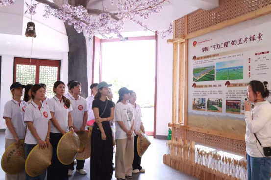 yl6809永利官网集团青春“e”行志愿者们在展示区里认真聆听讲解员对“千万工程”兰考实践成果的介绍。展板上一幅幅对比鲜明的照片,生动展现了兰考在乡村规划、环境整治、产业发展等方面取得的巨大成就,让志愿者们深刻感受到“千万工程”给农村带来的翻天覆地变化。