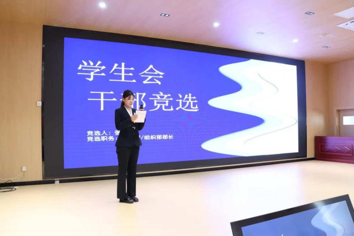 竞选过程中新一届学生会参选人员在台上侃侃而谈,结合自身优势,描绘着对学生会工作的独特构想,从加强部门协作,到创新活动形式,每一个计划都彰显着为同学服务、为学院添彩的决心。