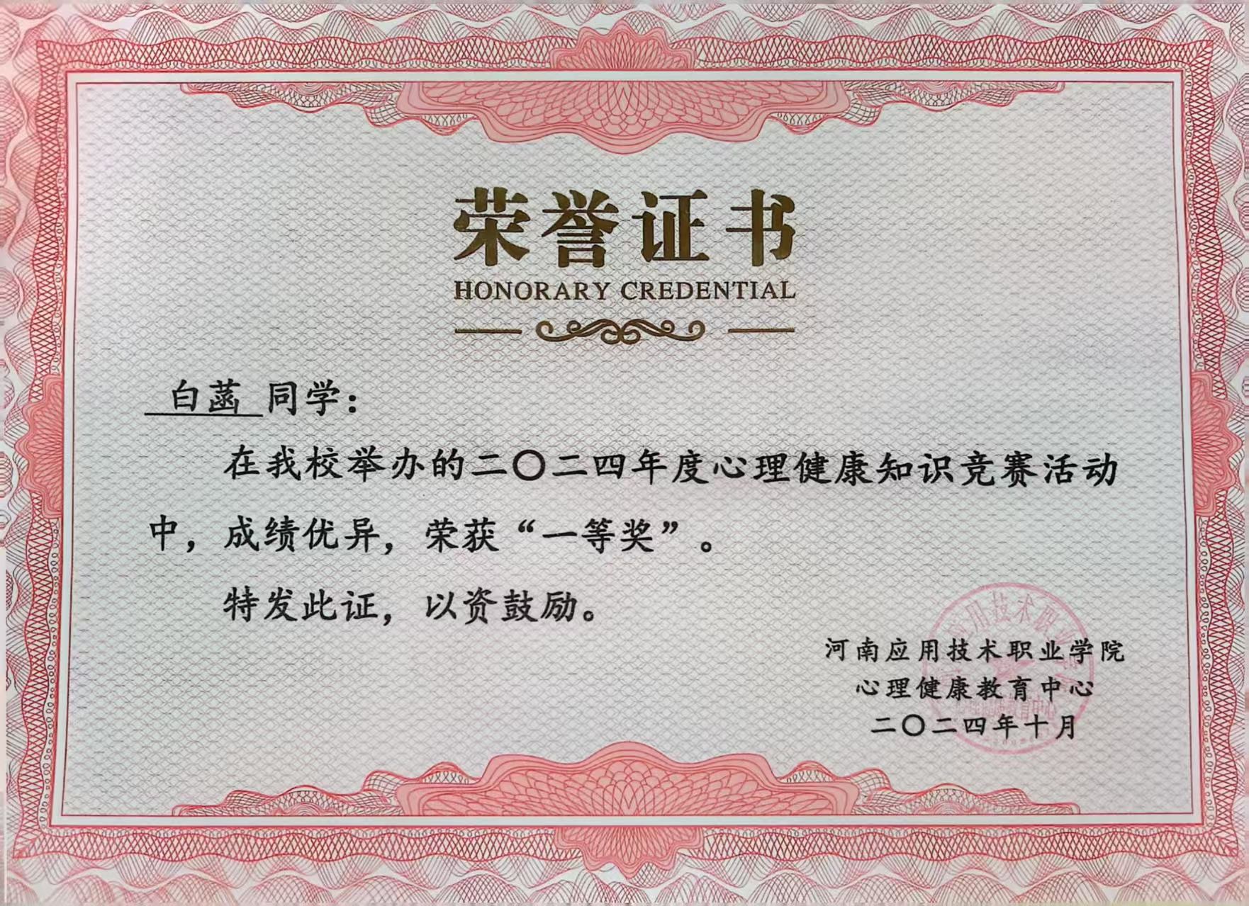 在校园文化活动中,她同样大放异彩:2025年5月,在yl6809永利官网集团简历大赛中,凭借逻辑清晰的结构设计、详实的经历呈现与流畅答辩,荣获一等奖,作品被列为学院示范模板;2025年,在“文化强国杯”全国高校文学知识挑战赛中,凭借扎实的人文素养与知识储备,斩获全国一等奖;2024年10月,在学校心理健康知识竞赛中,她凭借丰富的知识储备,荣获校级一等奖,展现了身心健康、全面发展的良好风貌。