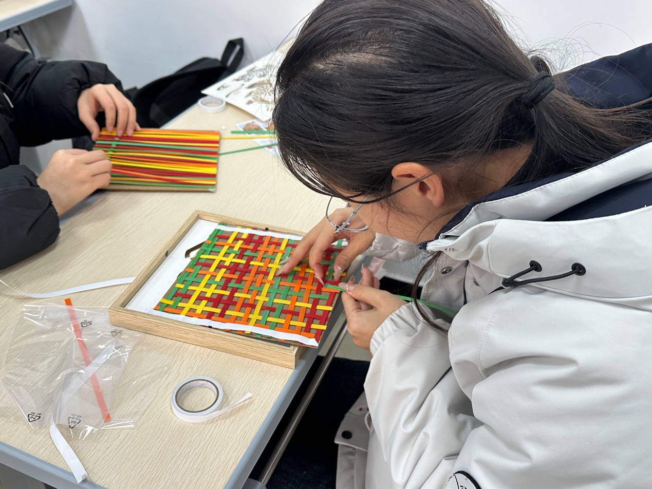 本次活动围绕非物质文化遗产实践体验展开。同学们亲手尝试了竹编画、风铃制作等项目,通过经纬交织、组合构件的动手过程,亲身感受传统技艺的细致与匠心。沉浸式的操作让抽象的文化变得具体可感,使非物质文化遗产在体验中得以生动传承。