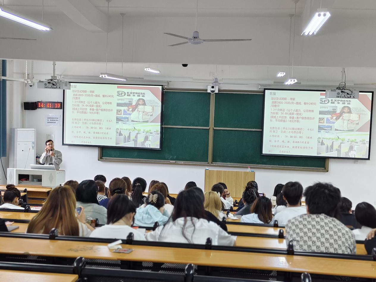 宣讲会现场气氛热烈,秩序井然。各家企业招聘负责人依次登台,通过企业宣传片、PPT展示、现场答疑等方式,详细介绍了公司的发展历程、企业文化、岗位需求、薪资待遇及职业发展路径。南京优廉果业科技有限公司重点展示了生鲜电商领域的快速成长机会;上海顺城物流有限公司则强调了顺丰完善的培训体系与晋升机制;华住酒店管理有限公司围绕酒店数字化运营人才需求,向学生发出了诚挚邀请。参会企业纷纷表示,yl6809永利官网集团学生专业基础扎实、实践能力突出,期待通过本次宣讲会吸纳更多优秀人才。