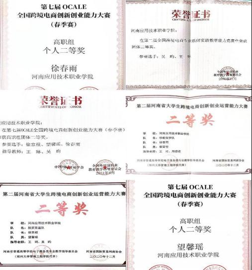 第八届OCALE全国跨境电商创新创业能力大赛(春季赛)国赛二等奖1个,三等奖2个,省赛二等奖1个