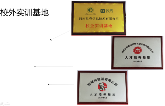 此外,我院与正大集团、京东物流、郑州肯德基、丹尼斯、郑州希尔信息技术有限公司、郑州九六一电子商务有限公司、郑州明美化妆品有限公司等多家企业开展校企合作。