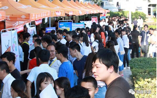 5月16日下午,商贸学院联合会计学院举办经贸类专场招聘会在学校北广场进行。尽管艳阳高照,但22家用人单位如期而至,提供了500余个岗位供2015级学生顶岗实习选择。招聘岗位覆盖了商贸、会计两学院电子商务、市场营销、物流、会计、金融、连锁等7个专业,初步统计,招聘岗位数与学生比例约是1.8:1。
